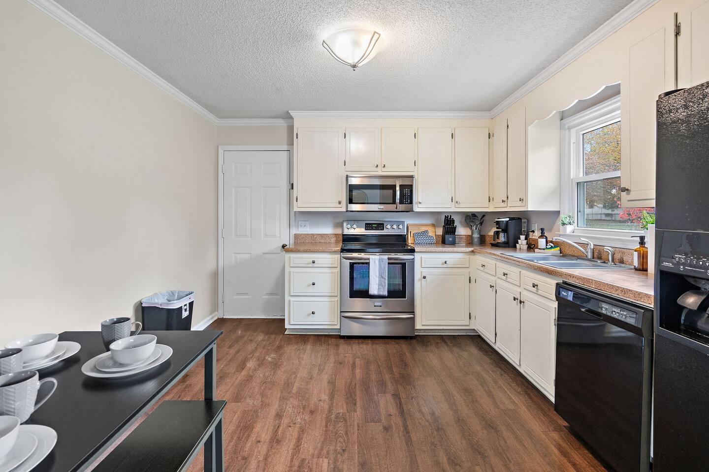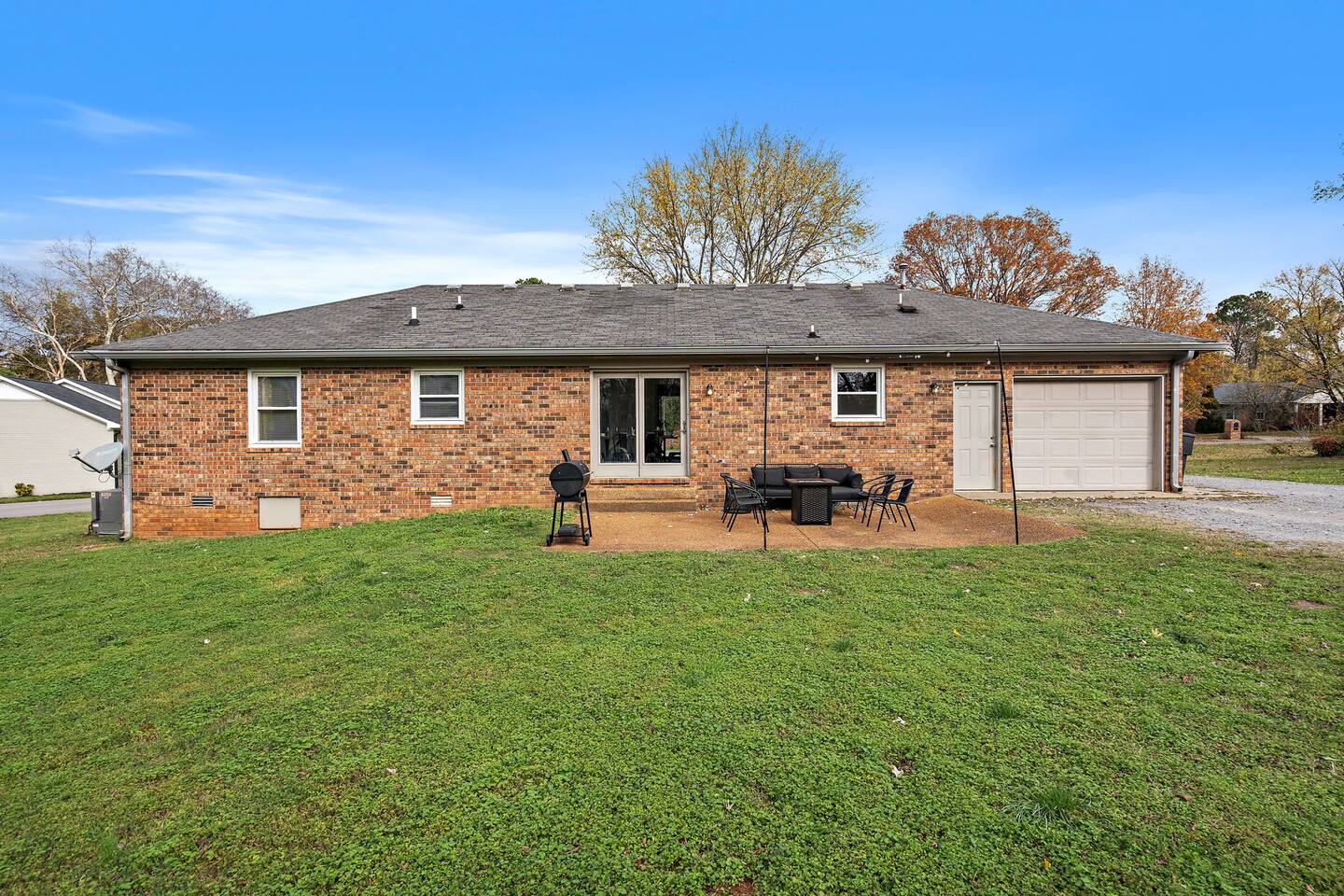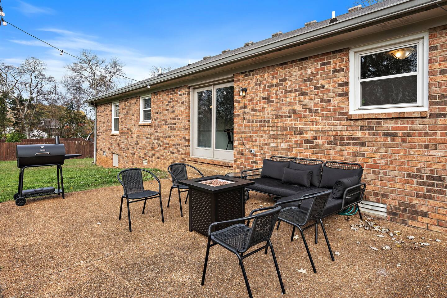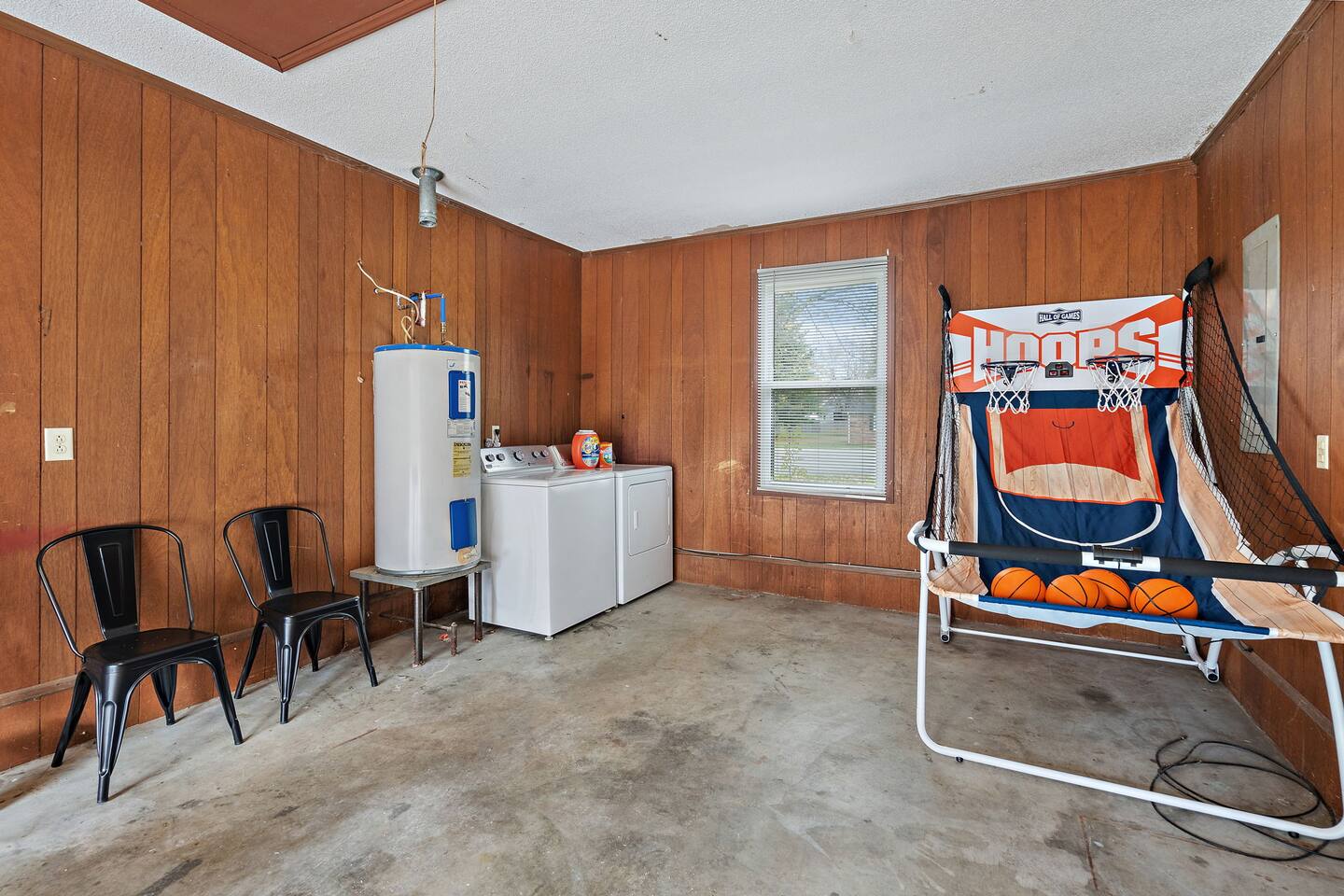 Welcome to your perfect getaway! This beautifully furnished 3-bedroom, 2-bath home is ideal for families, friends, or business travelers looking for comfort and style. Primary Bedroom: Relax in a spacious master suite featuring a queen-sized bed, a private bathroom, a smart TV, and a desk for an ideal work-from-home setup. Guest Bedroom: A cozy queen bed and a smart TV offer a peaceful retreat for guests. Bunk Bed Room: The perfect space for kids or extra guests, featuring a fun bunk bed setup and two classic arcade systems for hours of entertainment. Game Garage: Enjoy the ultimate fun zone with a putting game, a foosball table, and a basketball shootout game — ideal for friendly competition. Fully Equipped Kitchen & Dining Area: Cook your favorite meals in the well-equipped kitchen, and gather around the dining table with seating for up to 10 guests. Outdoor Space: Step outside to a large, private backyard with a patio, fire pit, and BBQ grill — perfect for relaxing evenings and outdoor dining. Book your stay today for a memorable and stylish experience!