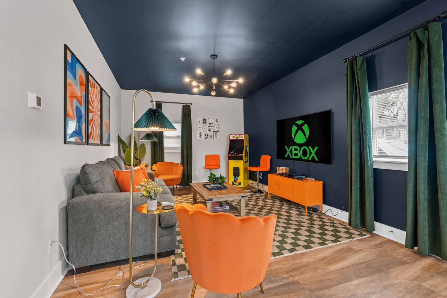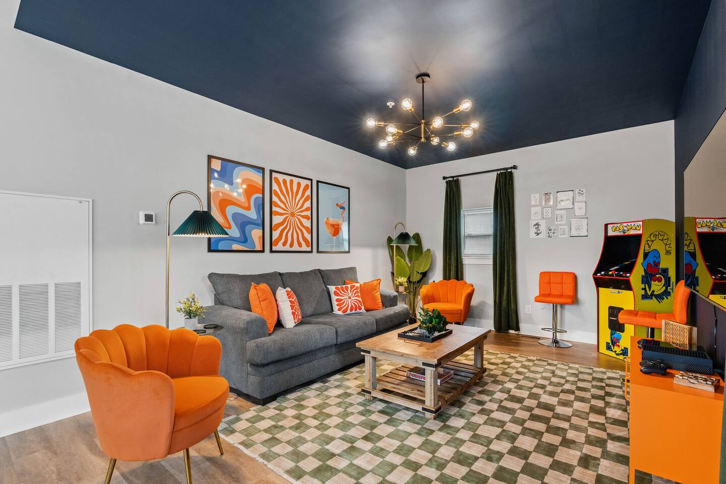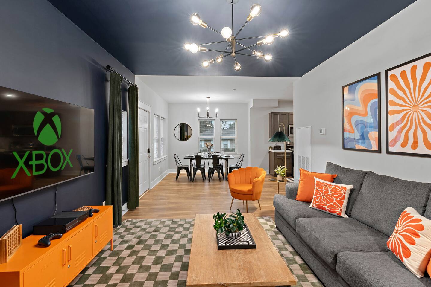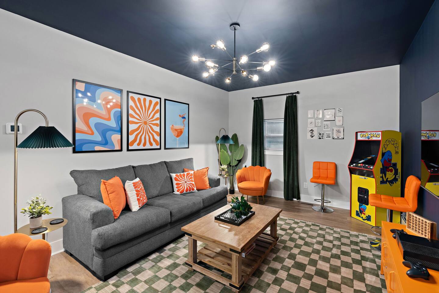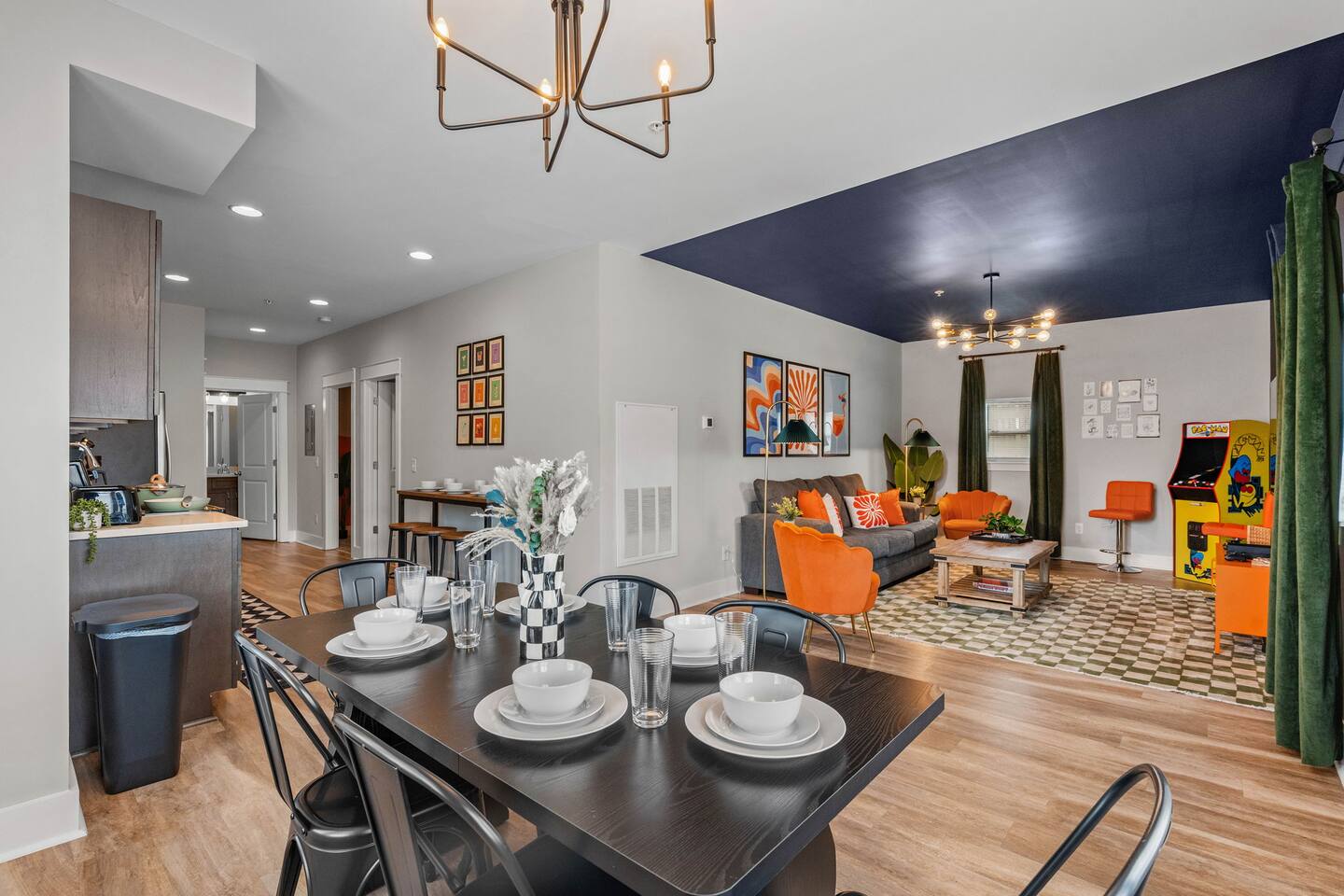 Enjoy the perfect Middle Tennessee home base in this stylish and comfortable apartment. Designed with modern decor and thoughtful amenities, the space features a fully equipped kitchen, cozy living area, arcade machine, and Xbox for added entertainment. Located within walking distance to local shops, restaurants, and attractions, it’s an ideal stay for families, friends, or business travelers. Enjoy fast Wi-Fi, a smart TV, and plush, comfortable beds to help you unwind after a day of exploring.